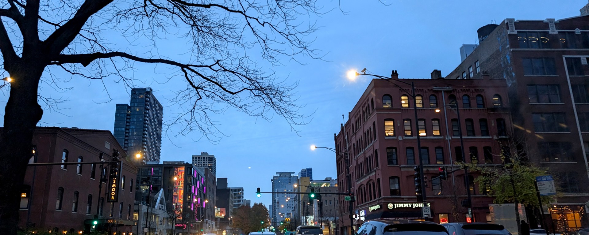 Takie miasto lubię. Kiedy zapada ten jesienno-zimowy zmierzch, robi się ciepło od świateł, choć dzień zimnawy, ale akurat tym razem nie za bardzo. W Red Line miejsca siedzące, pociąg sunie swoim tempem. W pedway pod Dalej Plaza pustawo. W drodze do City Hall minęła mnie jedna osoba. W City Hall pustawo. Ludzie rozchodzą się do domów. Piotrek też wyszedł. Poszliśmy sobie do Starbucksa po matcha latte. A póżniej do tego Costco. Ulicami, gdzie nie było korków. Takie powolne życie miasta w środę przed Thanksgiving.