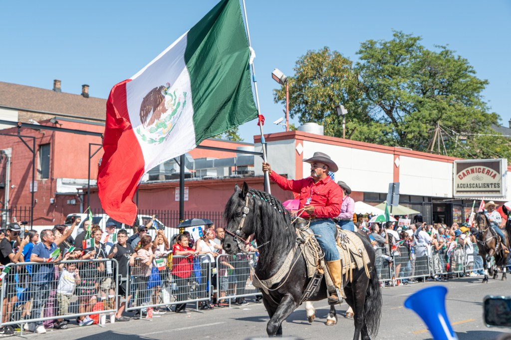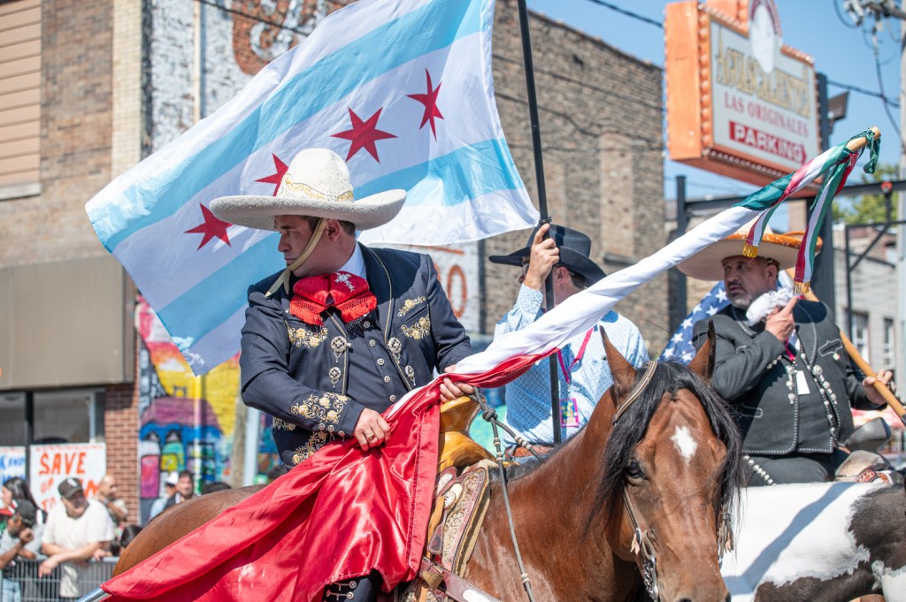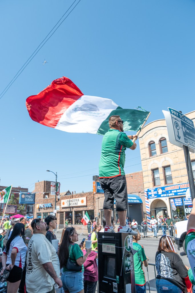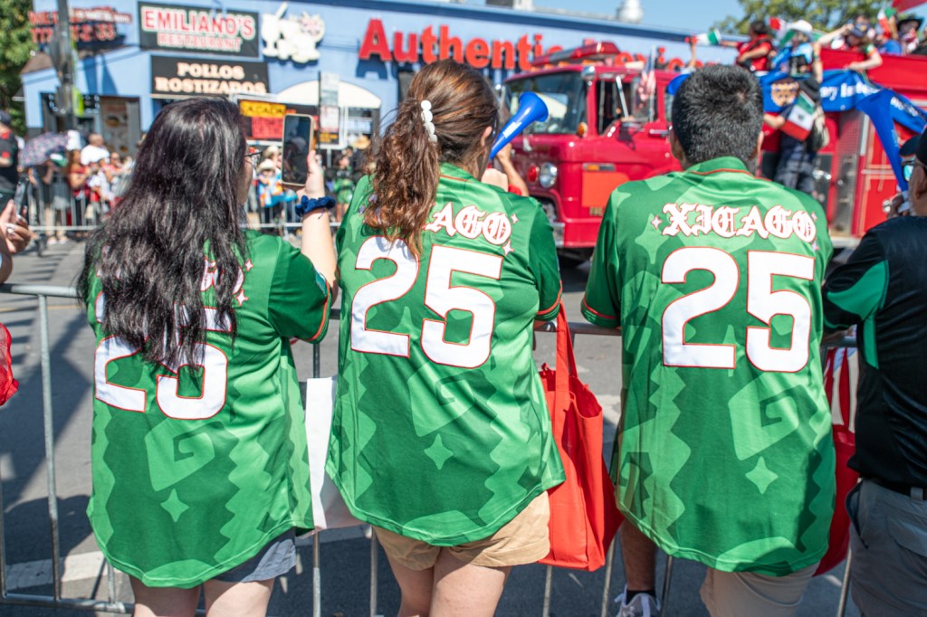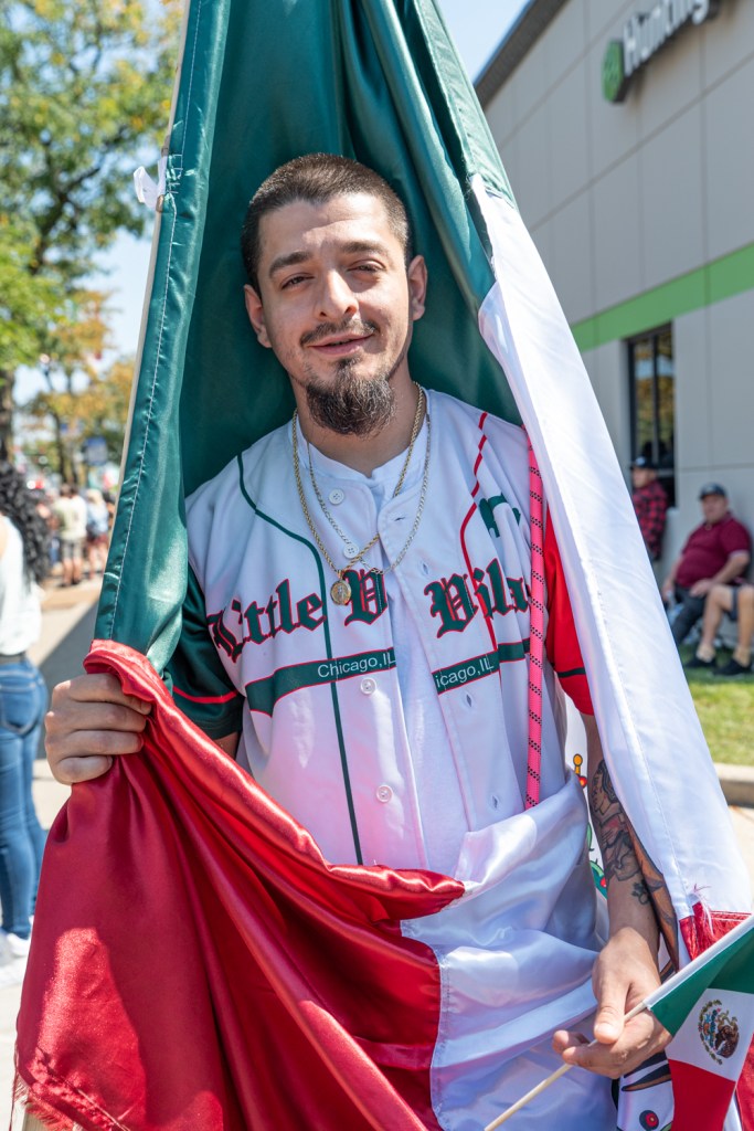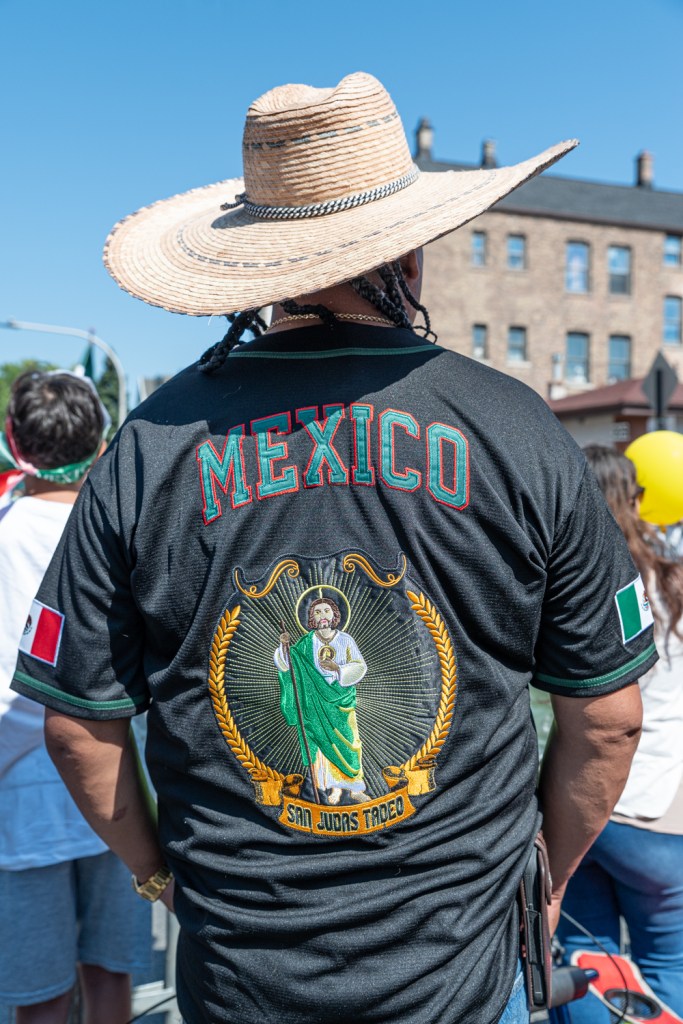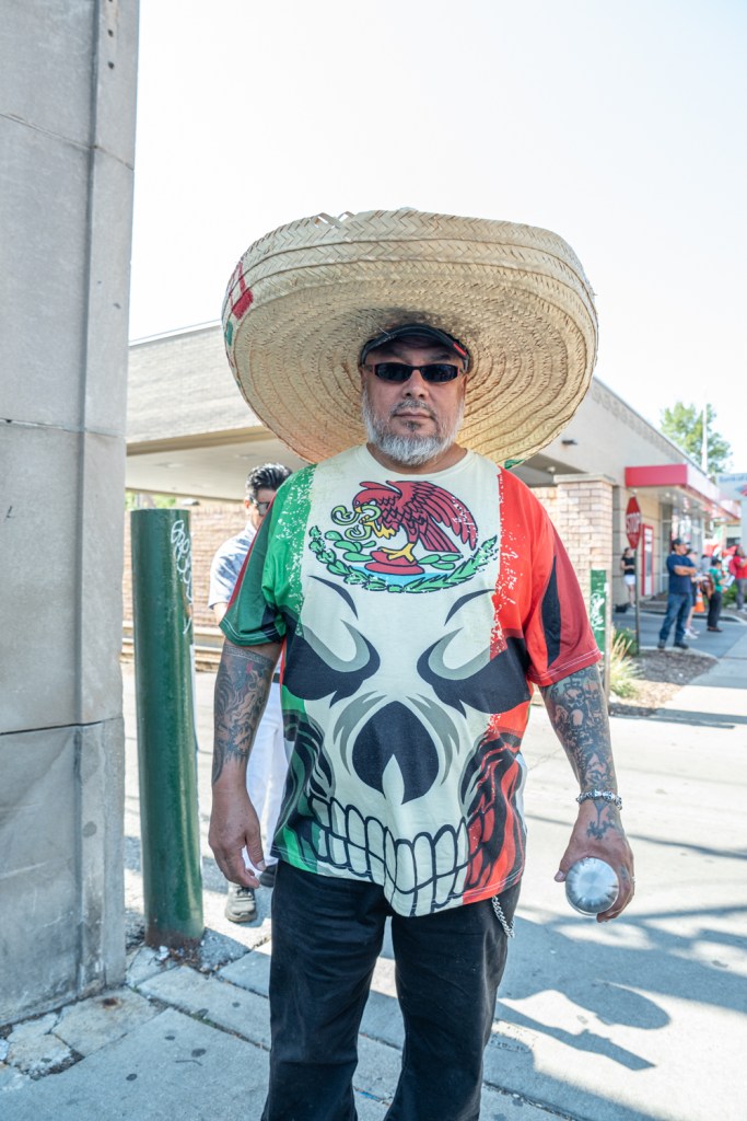 I wróciliśmy, w niedzielę, 14 września. Na paradę z okazji Święta Niepodległości Meksyku. Było gorąco, bo lato postanowiło zdecydowanie zostać dłużej w Chicago. Ale warto było! Kolory, głosy, muzyka, radość mimo wszystko. Piotrek znów ubrał swoją koszulkę jak ta powyżej. I poszedł w tłum robić zdjęcia tym ludziom. Dostał taki zastrzyk pozytywnej energii, którego potrzebował. Ludzie, na których od kilkudziesięciu tygodni urządzane są polowania w Chicago i okolicach – dokładnie POLOWANIA – a mimo tego przyszli na paradę!
